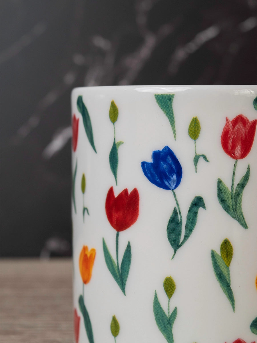 Celebrate the joy of spring with our Tulips mug, where bold blooms burst to life in vibrant detail. Featuring Shakera Tayub’s expressive floral artwork, this fine bone china mug brings a painterly touch to your daily tea or coffee ritual.